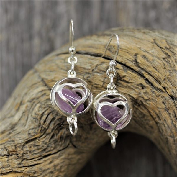 Aarre, ametistikorvakorut. Kätke sydämeesi ikioma aarteesi, sinun onnen ametistisi. Hopeiset korvakorut, joiden sisällä on omat onnen ametistisi.