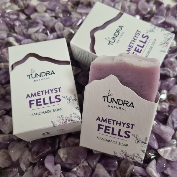 Saippuat valmistetaan perinteisellä menetelmällä luonnon raaka-aineista. Myös ametistit kaivetaan perinteisesti käsin Lampivaaran rinteiltä, jossa ne syntyivät jo 2000 miljoonaa vuotta sitten. Ota pieni jalokivi talteen ennen saippuan käyttöä.
